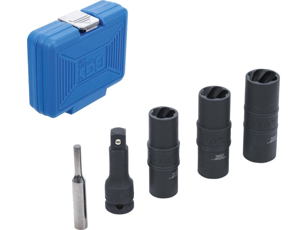 Sada speciálních nástrčných klíčů pro demontáž poškozených hlav šroubů nebo matic.