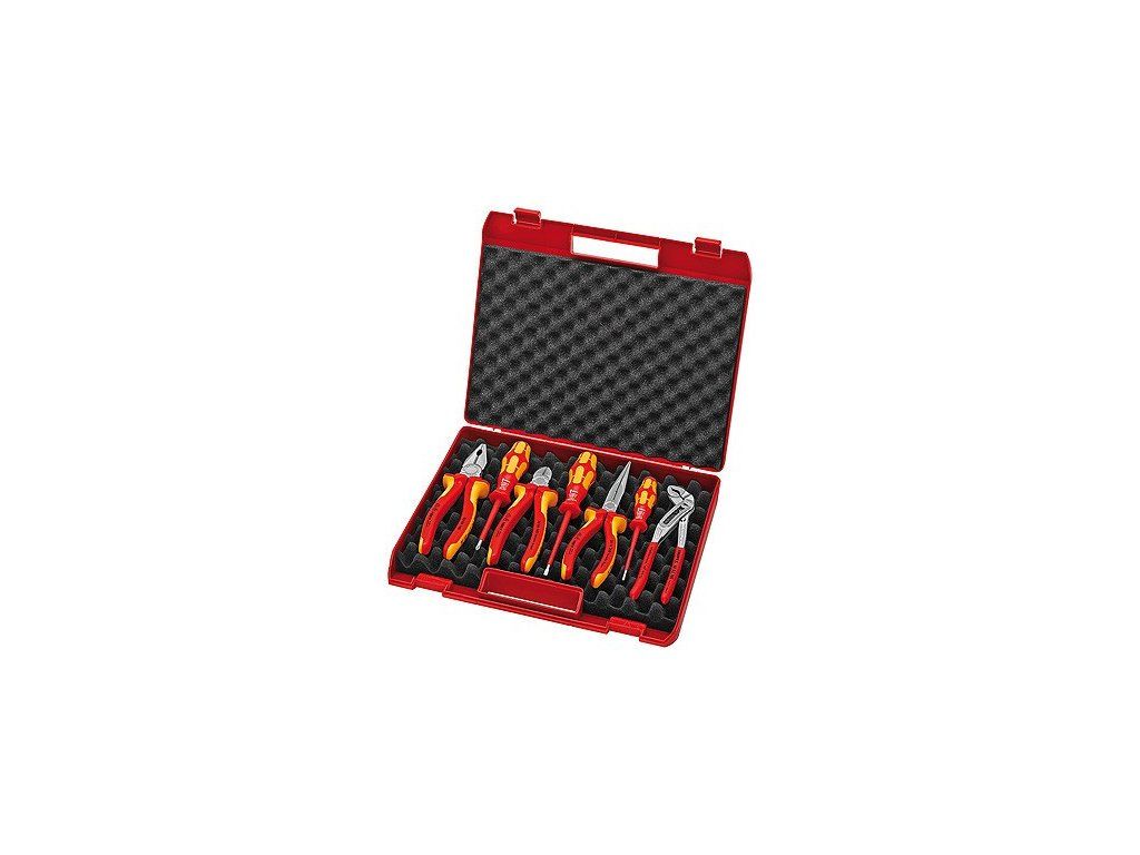 Velmi kvalitní a mnohostranně použitelný, nárazuvzdorný plastový kufr pro elektro montáže. Všechny kleště a šroubováky s výjimkou instalatérských kleští zkoušeny VDE podle DIN EN/IEC 60900.