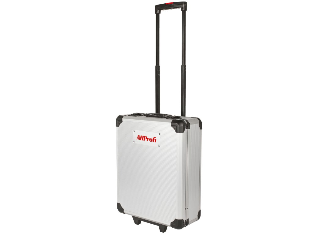 Kufr s nářadím je na kolečkách, která Vám usnadní transport po pevném povrchu na místo montáže. Ke snadné manipulaci přispívá teleskopické madlo a při cestě tak sadu nářadí nemusíte "tahat" v ruce. Pozor, kufr je osazen i klasickým uchem, které slouží výhradně k naložení, nebo přemístění (např. na ponk či stůl), tedy ke krátkodobému zatížení. Madlo však není určeno pro přenášení, mohlo by dojít k prasknutí hliníkového korpusu a následné újmě na zdraví, nebo poškození ručního nářadí.