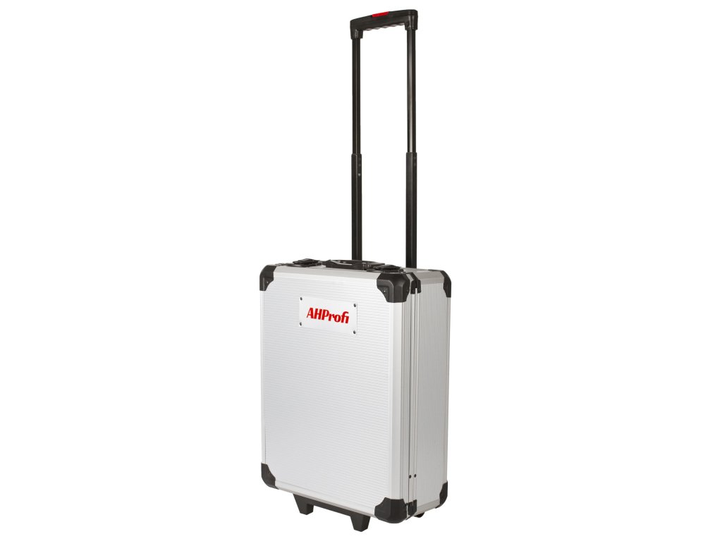 - Kufřík je vybaven teleskopickým madlem a kolečky, díky kterým je manipulace se sadou velice snadná.