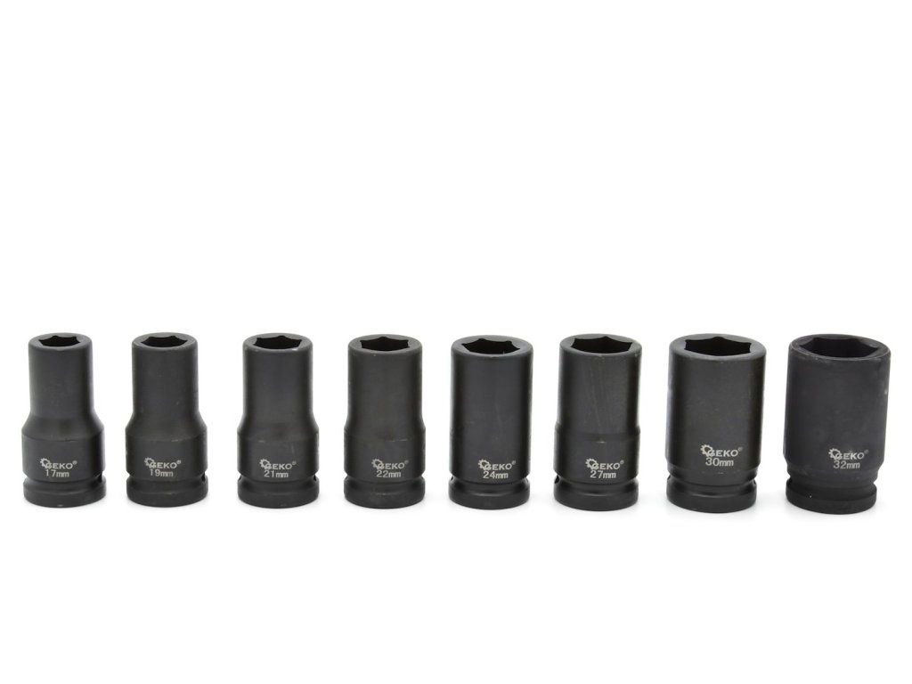Sada rázových nástrčných klíčů GEKO 3/4", 17–32 mm, 8 ks