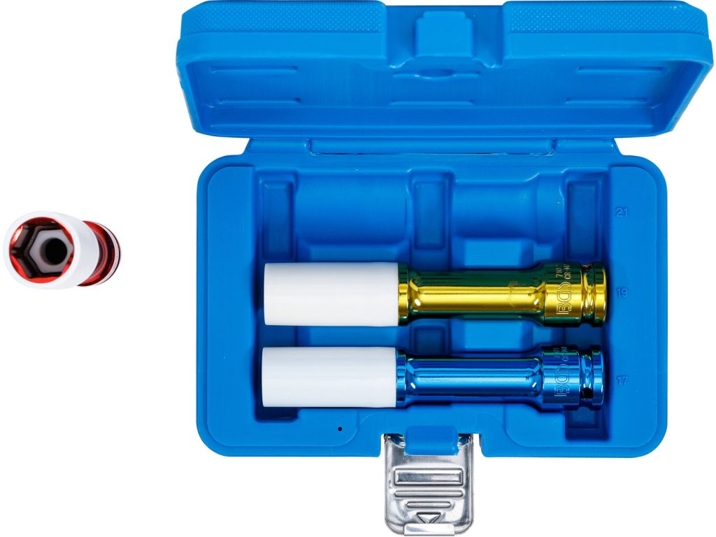 Sada 3 ks prodloužených klíčů na ALU ráfky 1/2" o rozměrech 17, 19 a 21 mm.