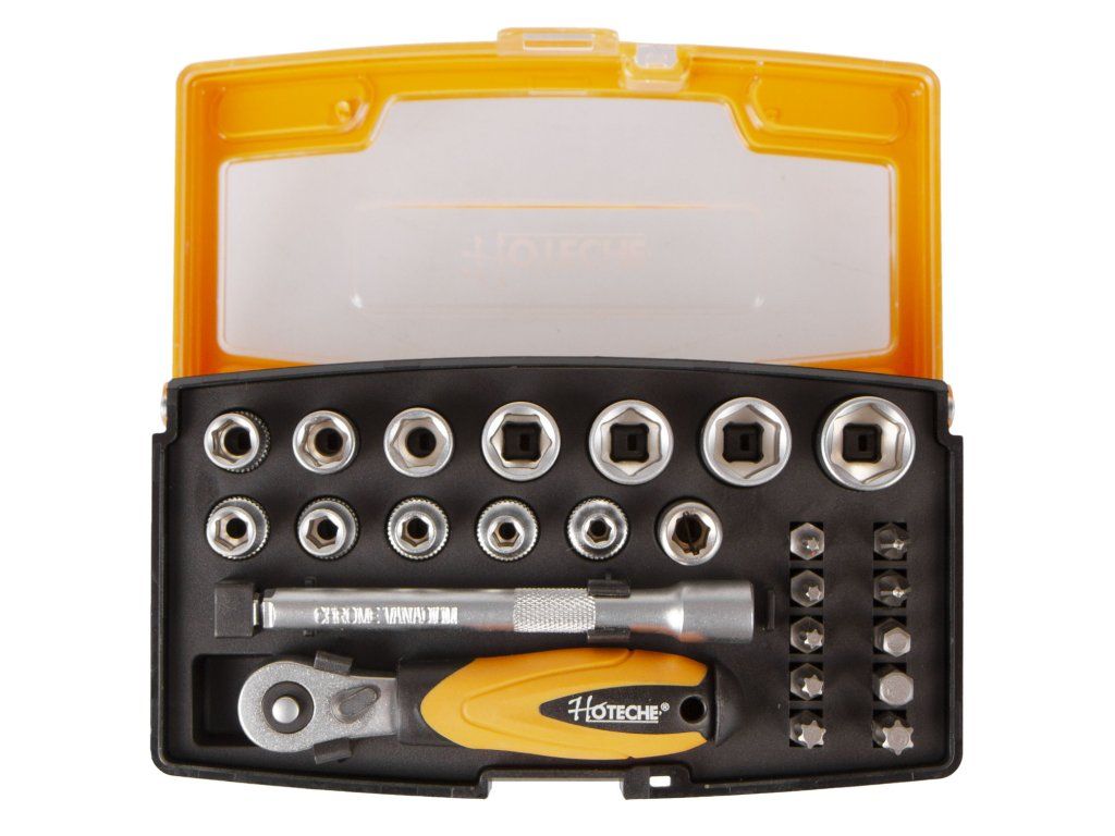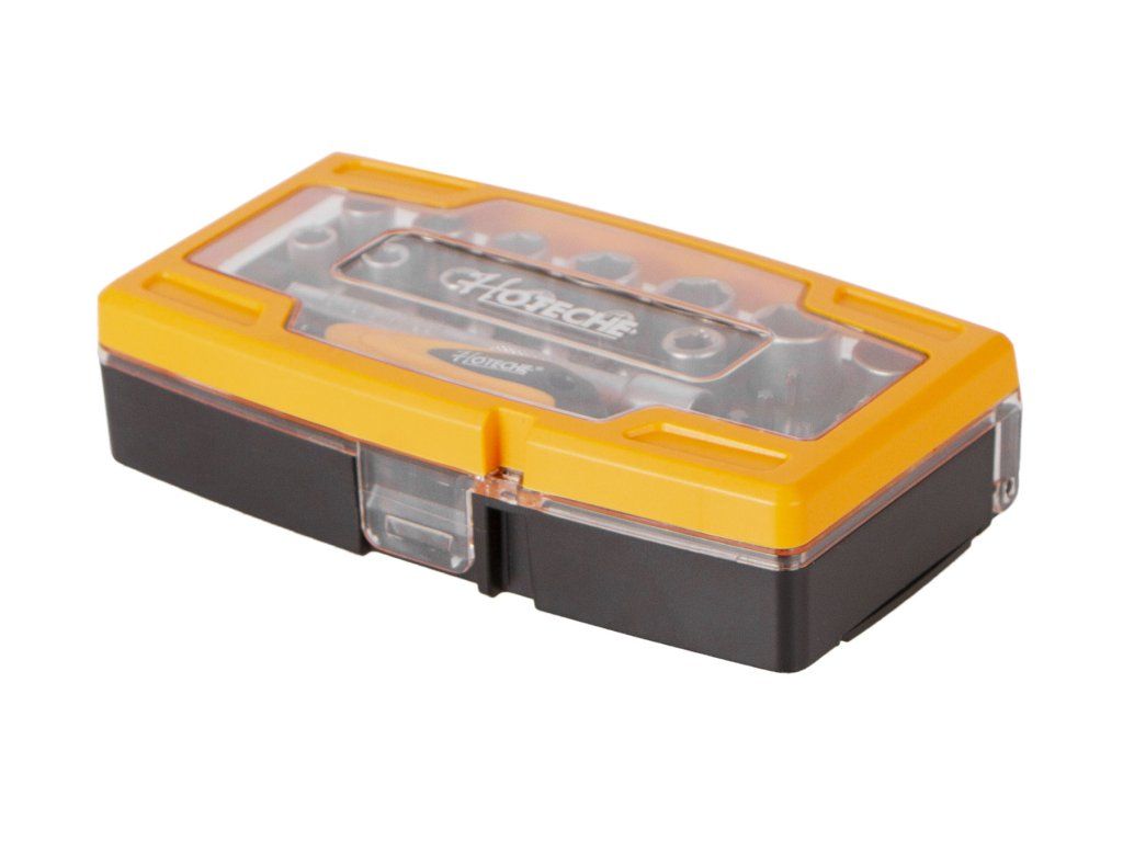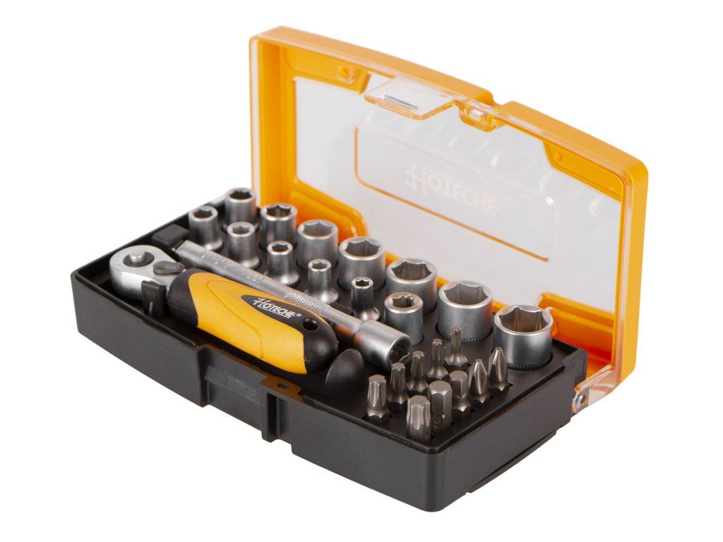Sada bitů a nástrčných klíčů 1/4" v plastovém boxu od značky Hoteche.