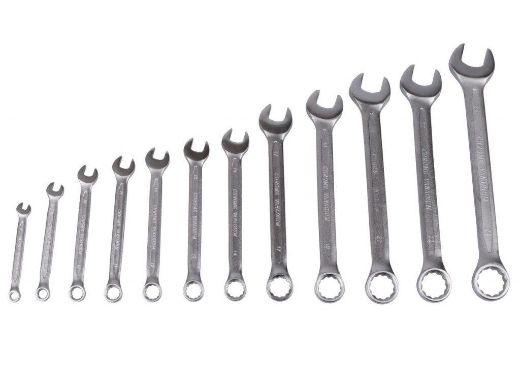 V sadě naleznete klíče velikostí od 8 až po 24 mm (kromě velikostí 7, 9, 15, 16, 18, 20 a 23).
