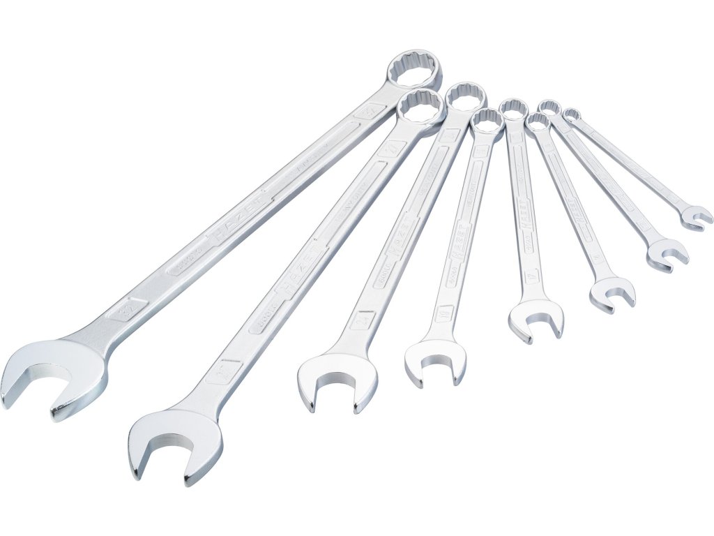 Sada kvalitních očkoplochých klíčů, německý výrobce HAZET, chrom-vanadium, dlouhé štíhlé provedení, velikost 10 až 32 mm, délka 210 až 530 mm.