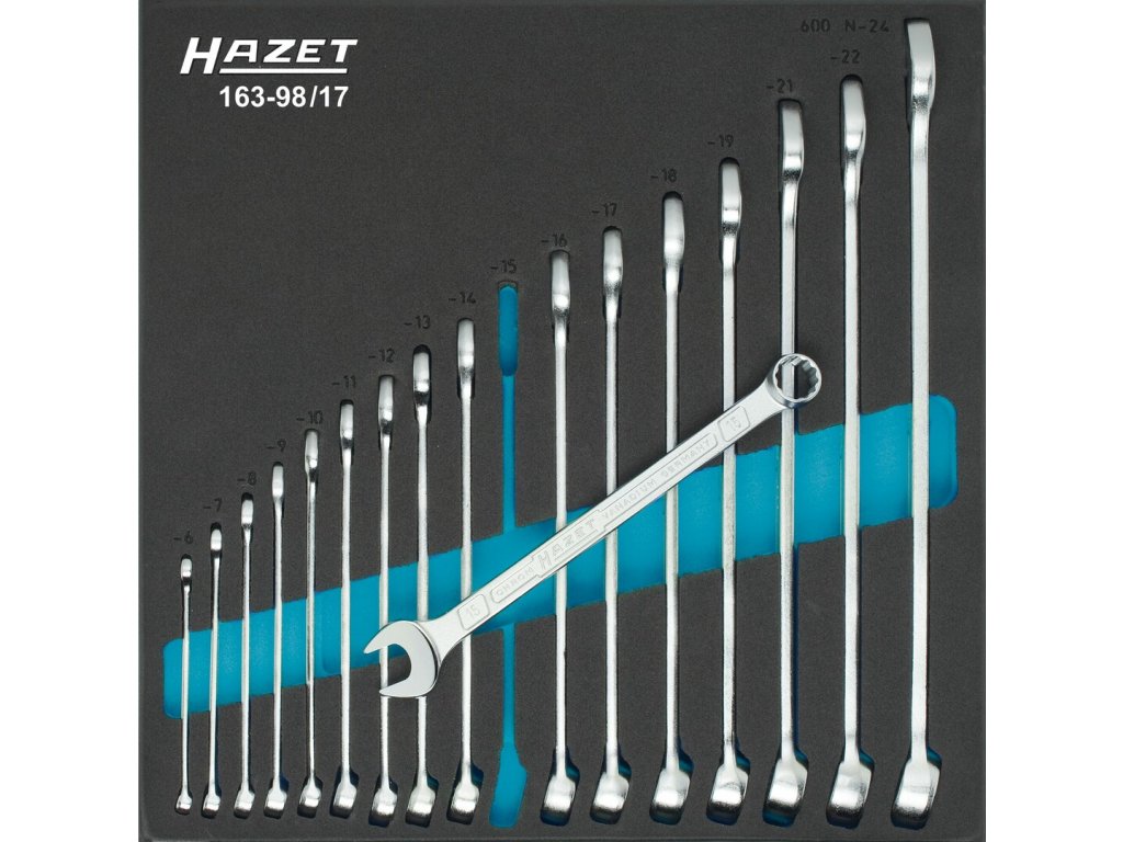 Sada očkoplochých klíčů HAZET v pěnové vložce, 17 kusů.