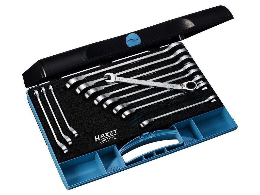 Sada ráčnových očkoplochých klíčů od vysoce kvalitního výrobce HAZET (Německo), 12 kusů, velikost klíčů 8-19 mm.