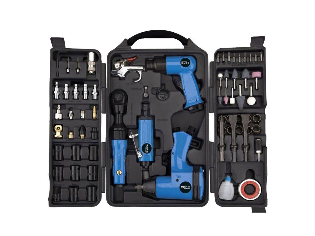 71dílná sada pneumatického nářadí GÜDE je určena pro základní dílenské práce provozované na stlačený vzduch, vhodná pro autoservisy, montážní dílny i domácí použití.