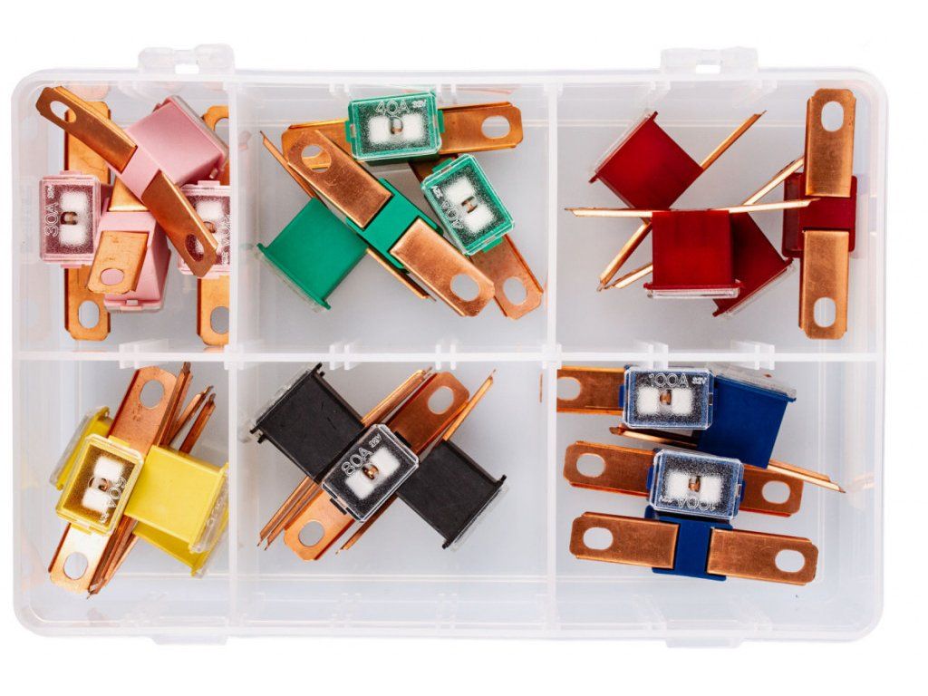 Sada 24 ks pojistek. Sada obsahuje 30, 40, 50, 60, 80 a 100 Amp.