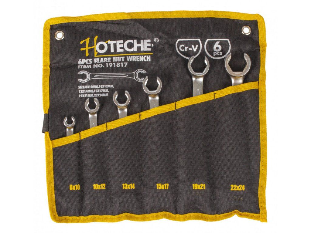 Sada polootevřených klíčů, 6 ks. Rozměry klíčů: 8 x 10, 10 x 12, 13 x 14, 15 x 17, 19 x 21 a 22 x 24 mm.
