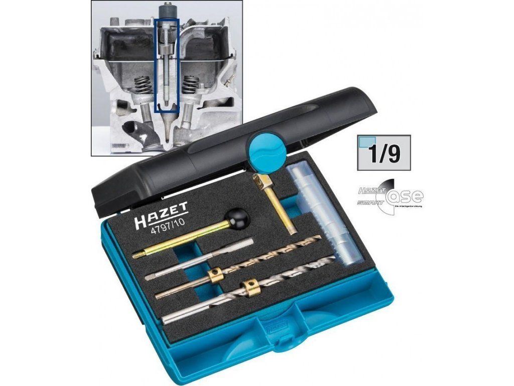 Sada pro opravu závitů u upevňovacích šroubů vstřikovačů od kvalitního německého výrobce HAZET, pro motory MERCEDES-BENZ CDI se zlomenými pružnými šrouby M6x1.