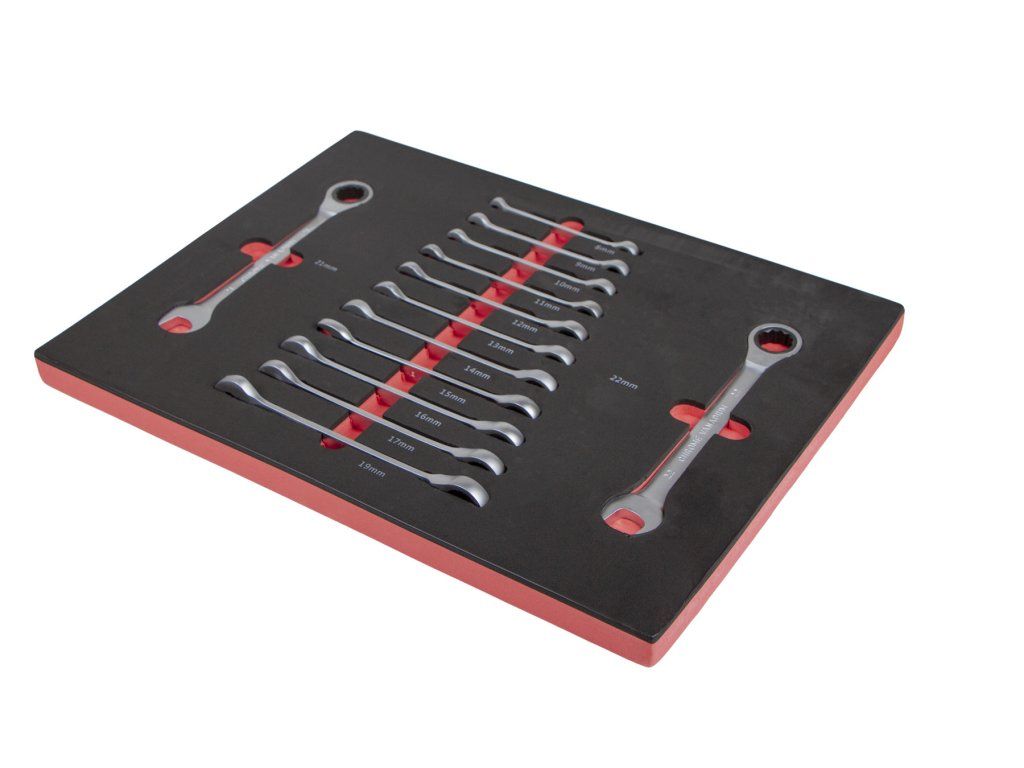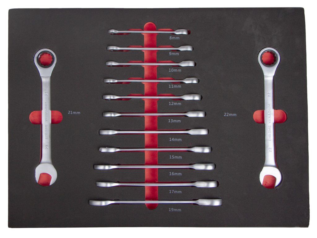 Sada ráčnových očkoplochých klíčů ve výplni do dílenského vozíku, 13 dílů - VV013RK01