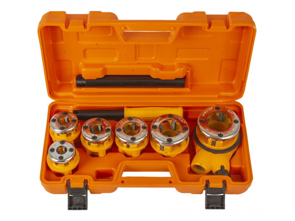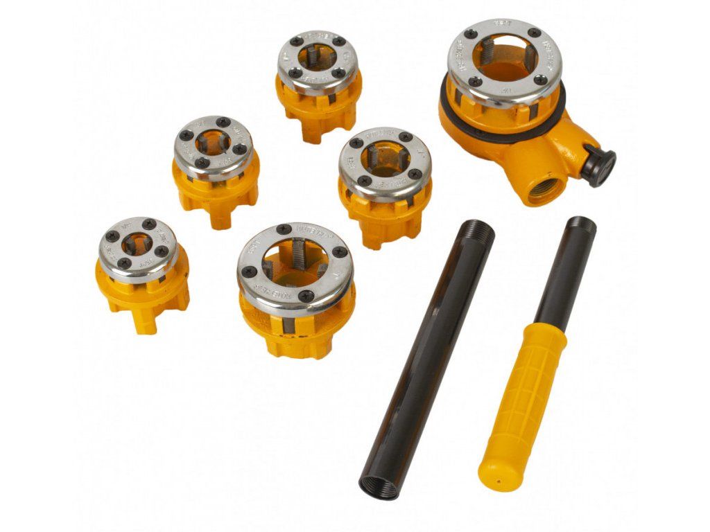Sada ráčnových závitníku na trubky. 6 ks. Velikosti oček: 1/4", 3/8", 1/2", 3/4", 1", 1-1/4".
