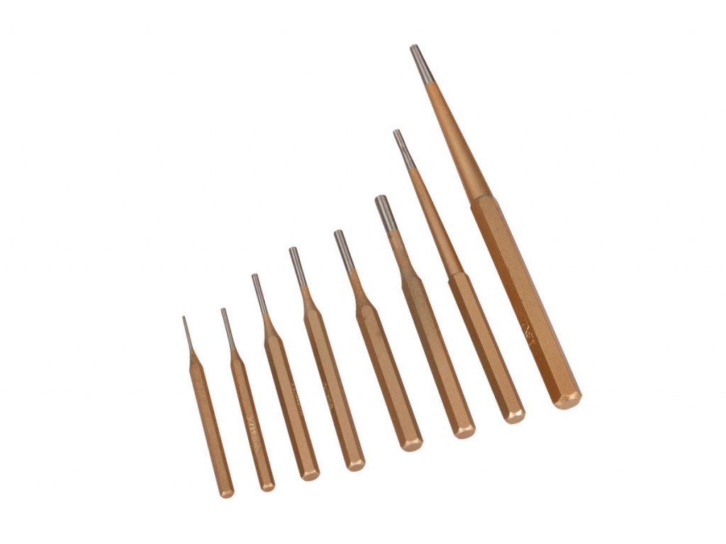 Komplexní sada pro kutily i profíky, ve které naleznete důlčíky, ploché sekáče, vyrážeče závlaček a průbojníky různých velikostí.