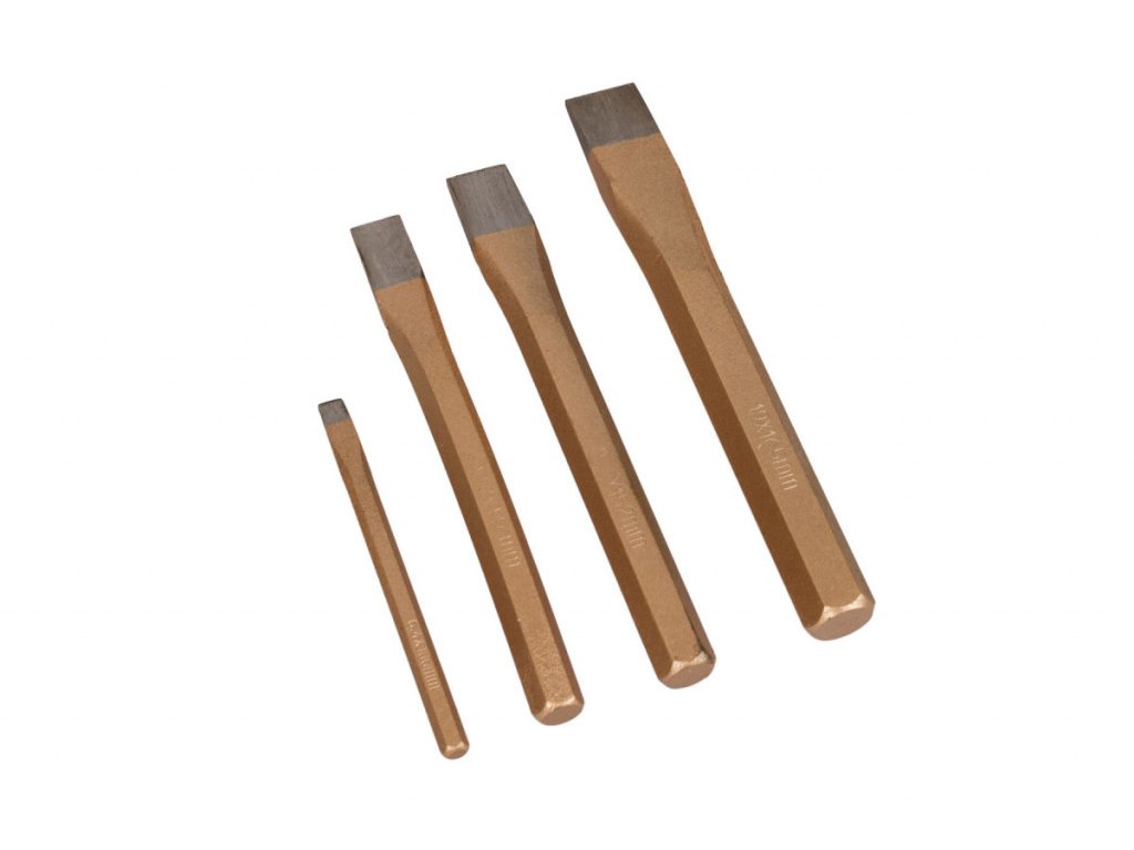 - 4x sekáč plochý: 19x165 mm, 15,8x152 mm, 12,7x146 mm, 6,4x100 mm