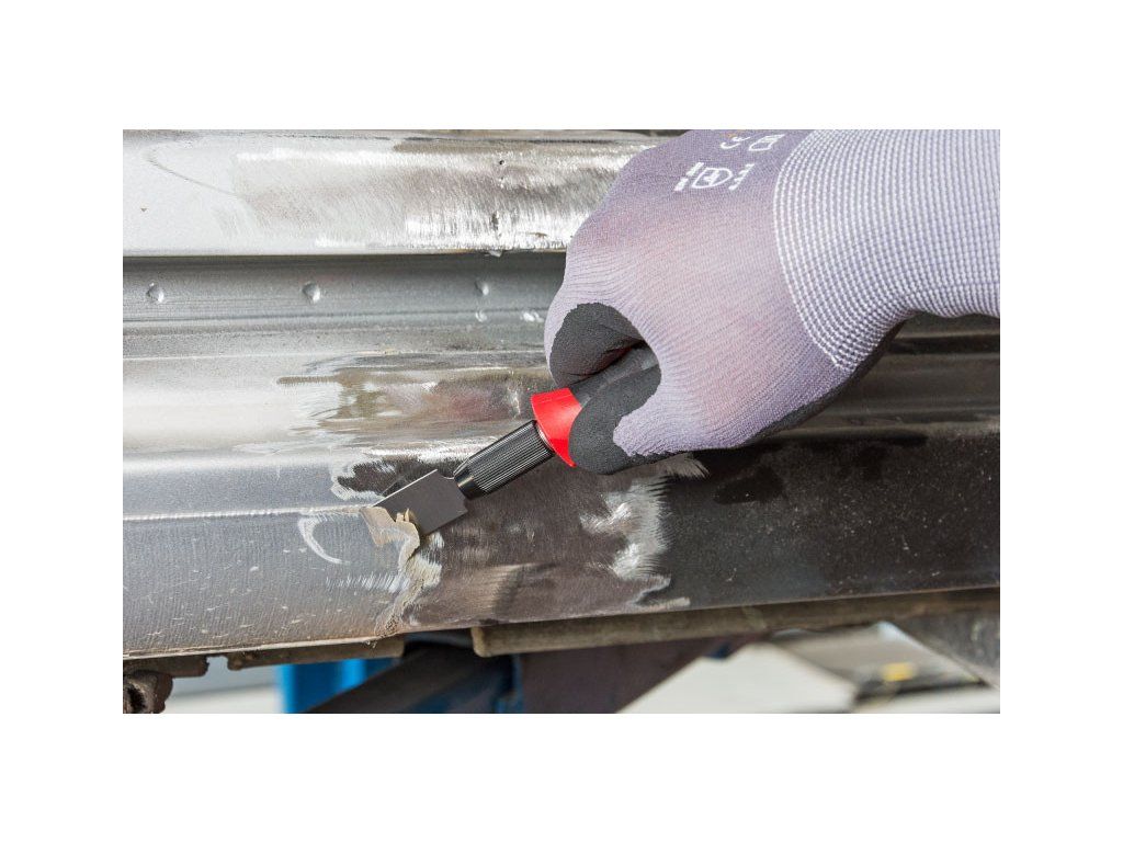 Škrabku využijete k odstranění plaket, nálepek, známek, zbytků lepidla nebo také k odstranění motorových těsnění (např. na hlavě válců nebo ventilovém víku).