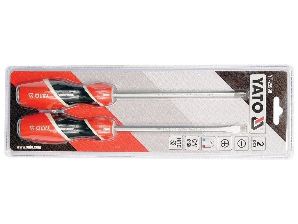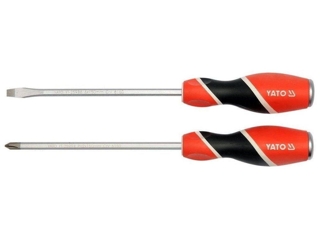 Sada obsahuje plochý šroubovák 6 mm a křížový šroubovák PH2 o délce 150 mm, vhodné pro práci s pevně utaženými spoji.