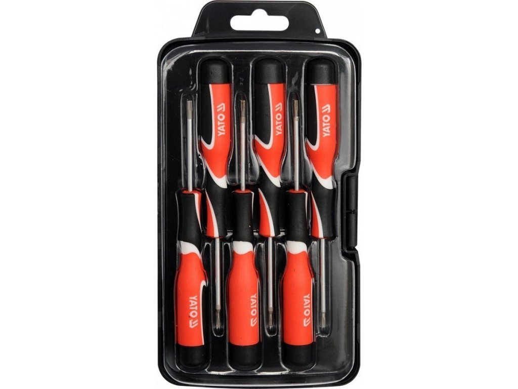 Sada šesti TORX šroubováků s úzkou rukojetí.