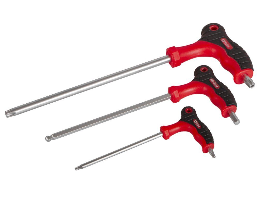 | 9 ks | Šroubováky TORX s T-rukojetí: T10 x 75, T15 x 100, T20 x 100, T25 x 150, T27 x 150, T30 x 150, T40 x 150, T45 x 200, T50 x 200 |