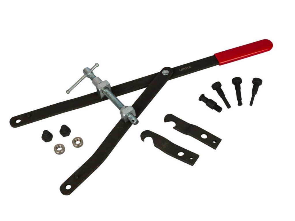 Univerzální sada držáku řemenice a spojky ventilátoru je nezbytná pro snadnou a efektivní práci s motorem. Umožňuje pohodlnou montáž a demontáž spojky ventilátoru a spolehlivě přidržuje řemenici vačkové hřídele. Díky univerzálním rozměrům je vhodná pro široké spektrum automobilů.