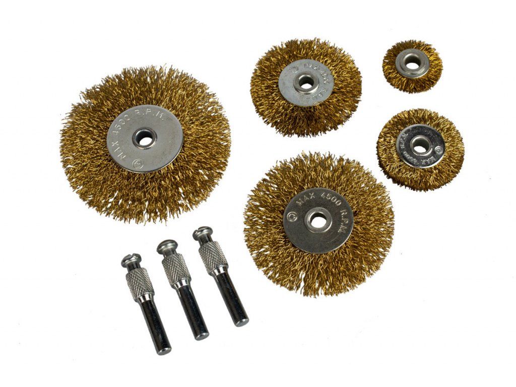 - 5 ks vnějších drátěných kartáčů o průměru: 25, 38, 50, 63, 75 mm