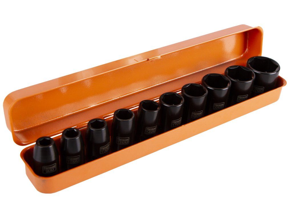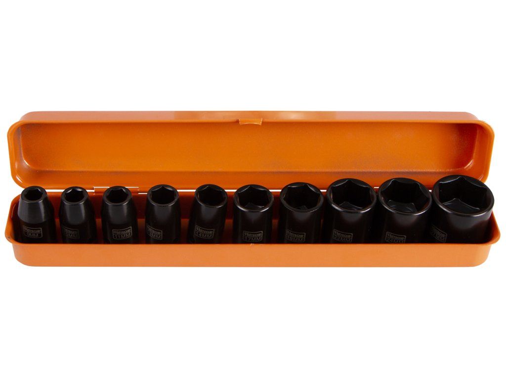 - Nástrčné klíče 1/2": 9, 10, 11, 13, 14, 17, 19, 22, 24 s 27 mm.