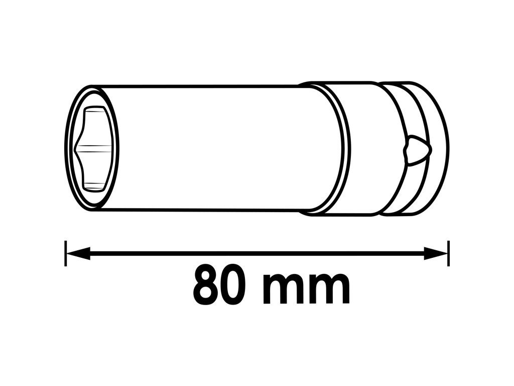 Pohon: 1/2" čtvercový (12,5 mm), výstup: vnější šestihran. Oba klíče mají délku 80 mm a jsou vyrobeny z odolné Cr-Mo oceli pro vysokou životnost i při náročném použití.