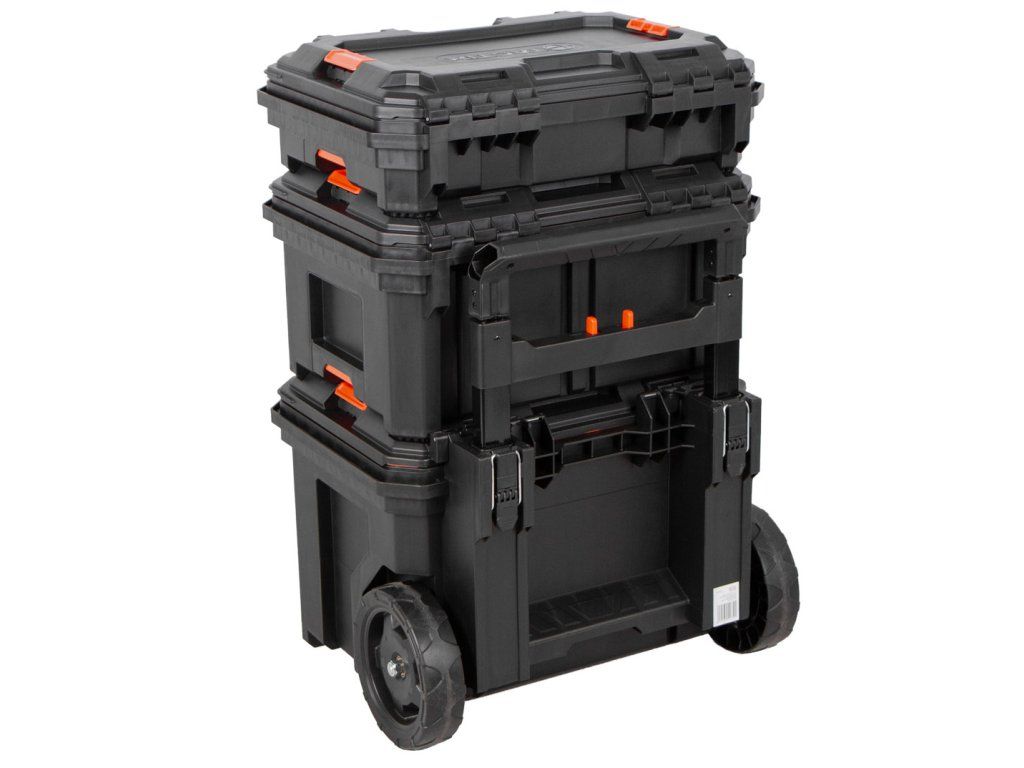 Tento úložný systém nabízí 3 stohovatelné kufry, každý s unikátními vlastnostmi a velkým úložným prostorem.
