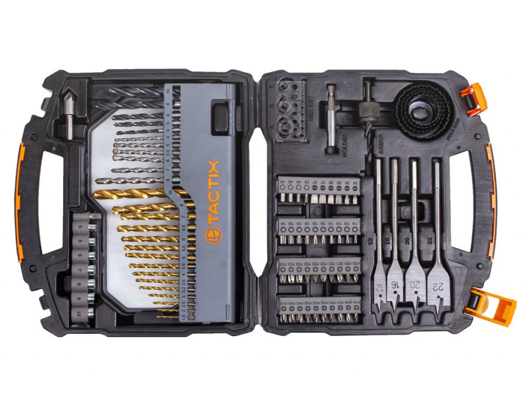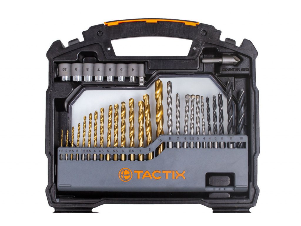 - 15 ks vrtáků na kov: 1,5; 2; 2,5; 3; 3,2; 3,5; 4; 4,5; 5; 5,5; 6; 6,5; 7; 8; 10 mm.