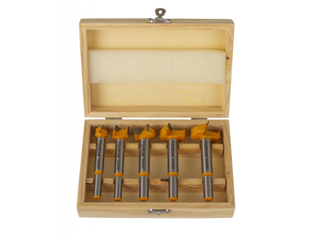 Sada 5 ks vrtáků, sukovníků do dřeva. Vrtáky o průměrech: 15, 20, 25, 30 a 35 mm.