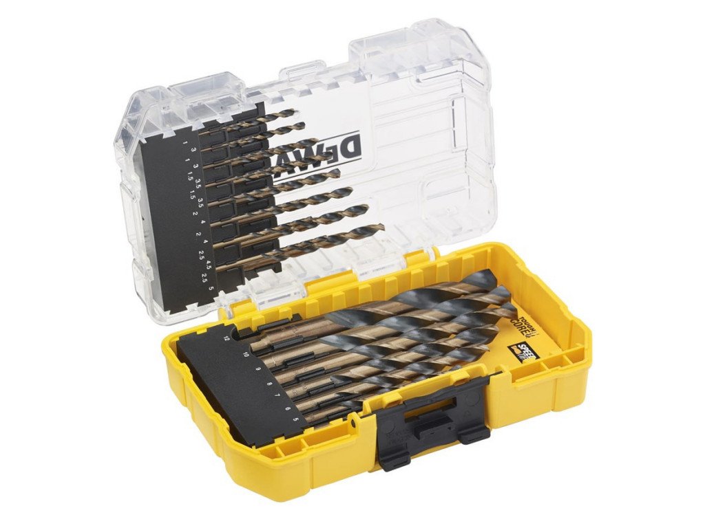 Sada vrtáků do kovu od značky DeWalt, 23 ks. 1 - 12 mm. 2x větší životnost díky silnějšímu jádru.