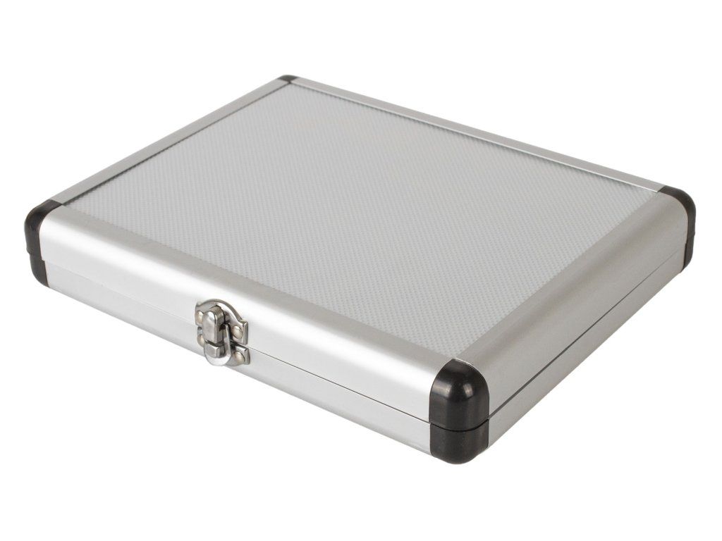 Vrtáky jsou přehledně uloženy ve hliníkovém zavíracím pouzdře, kde každý z vrtáků má své místo.