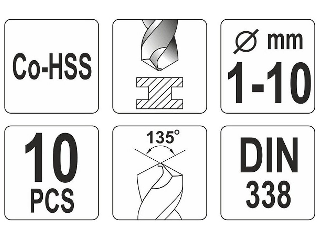 Sada vrtáků na kov 10ks HSS-COBALT 1-10mm