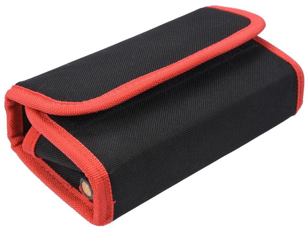 Sada obsahuje 10 výměnných koncovek, ergonomickou rukojeť a zkoušečku napětí, vše přehledně uložené v textilním pouzdře se zapínáním.