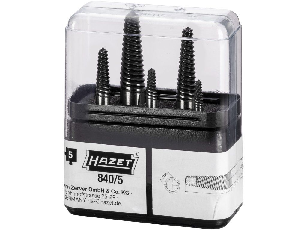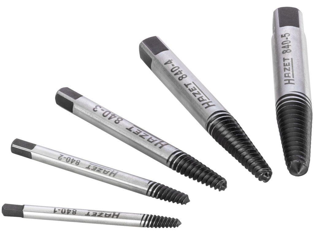 Pětidílná sada vytahováků šroubů: Ø otvoru = 1,8 - 7 mm, Ø vytahováku = 1,4 - 11 mm, pro šrouby M 3 - 18.