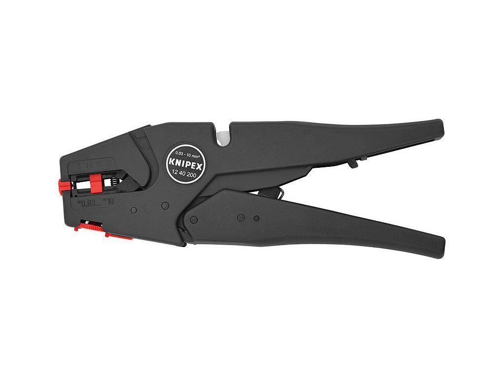Pro jednožilové vodiče, vícežilové vodiče, vodiče s jemnými dráty s umělohmotnou nebo gumovou izolací. Automaticky se přizpůsobuje různým průřezům vodičů - tím nedochází k žádnému poškozování vodičů. Hloubka řezu nastavitelná pro různé izolační materiály. S kleštěmi na štípání měděných a hliníkových vodičů s více dráty do 10 mm? nebo jedním drátem do 6 mm?. Mechanika s lehkým chodem. Nože a plastové upínací čelisti lehce vyměnitelné. Nepatrná hmotnost. Těleso: plast, vyztužen optickými vlákny. Nůž: speciální nástrojová ocel, kalená v oleji. Pro tenké páskové vodiče do šířky 10 mm v jedné pracovní operaci.