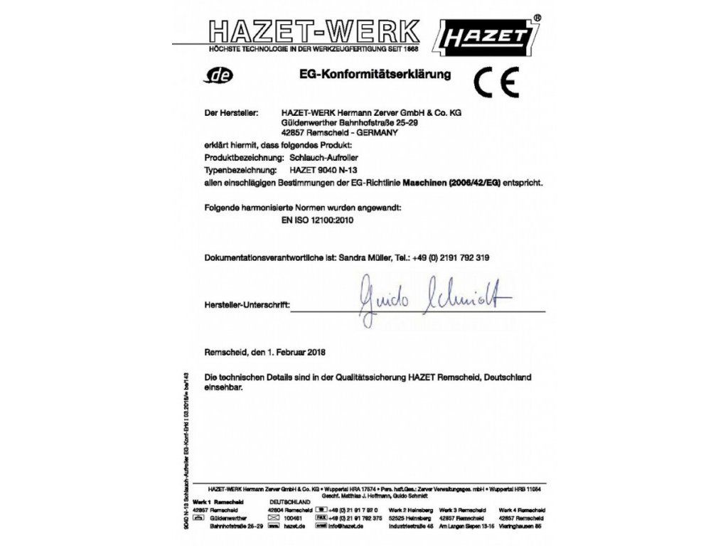 - Splňuje všechna příslušná ustanovení směrnice ES o strojních zařízeních 2006/46/ES.