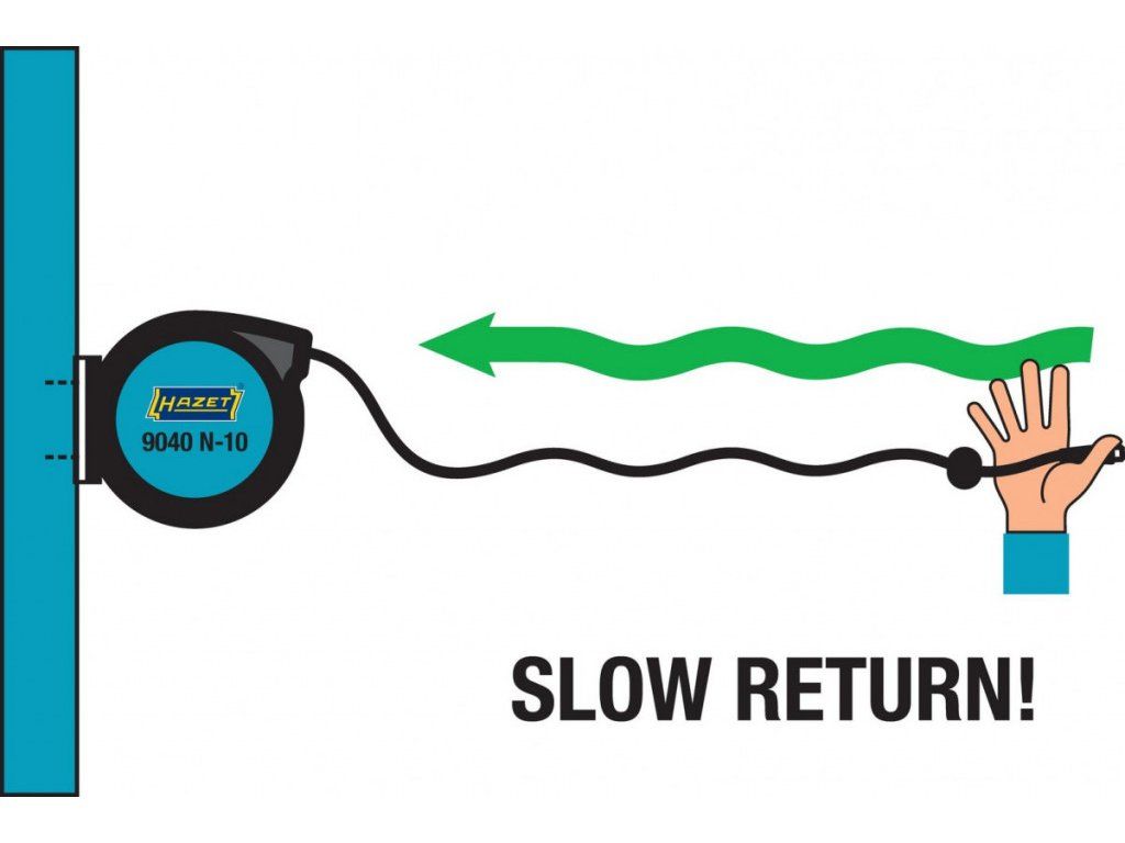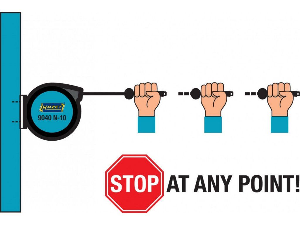 Automatický naviják vzduchové / vodní hadice disponuje funkcí "Stop at any point", která Vám zajistí zastavení kabelu v jakékoli vytažené poloze. Pro zvýšení bezpečnosti je navíjení bržděno, aby nedošlo k vymrštění kabelu a zranění osob, či poškození majetku při prudkém navíjení. Navíjení spustíte krátkým povytažením hadice.