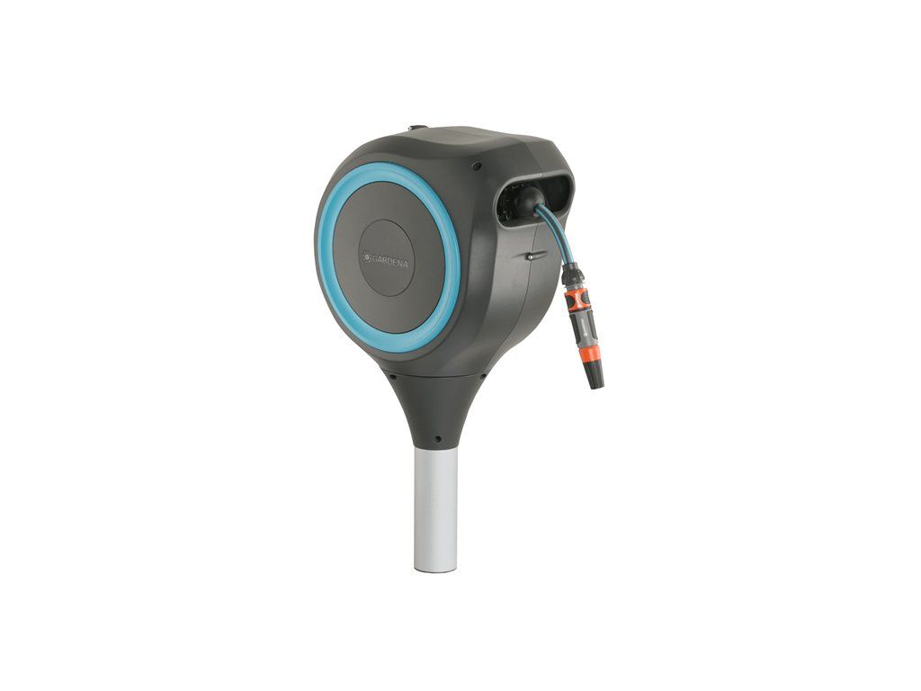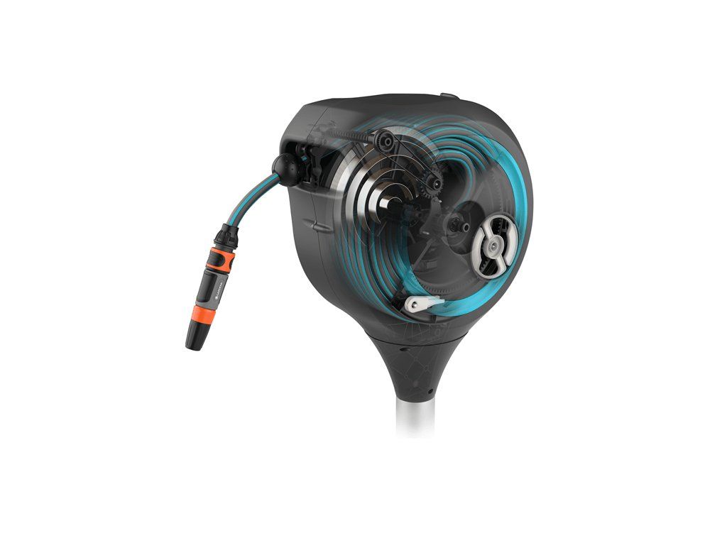 Aby nedocházelo k zablokování nebo kroucení hadice, udržuje integrovaná vodící cívka zahradní hadici v dráze a technologie RollControl zajišťuje bezpečné a kontrolované navíjení.