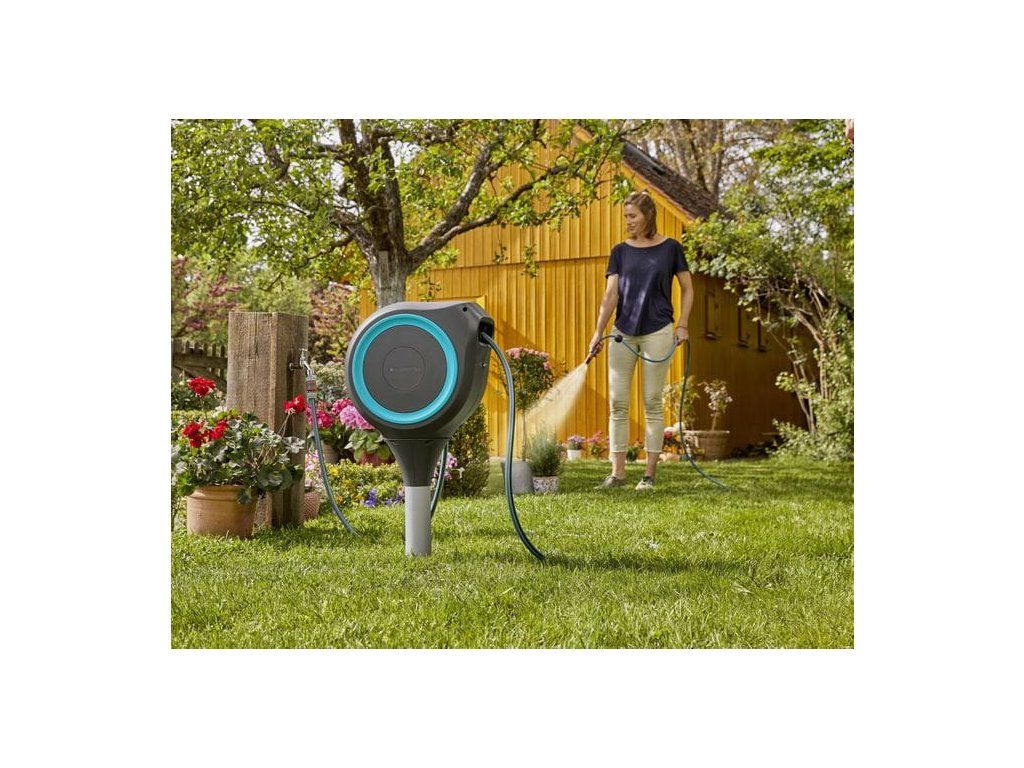 Pro použití jednoduše vytáhněte zahradní hadici na maximálně 15 metrů a můžete okamžitě začít zavlažovat. Integrované uzamykací body v krátkých vzdálenostech zajišťují snadnou manipulaci a automaticky fixují hadici v požadované vytažené délce. Díky modernímu designu lze hadicový box otočit o 360°, čímž se dostanete do všech koutů vaší zahrady.
