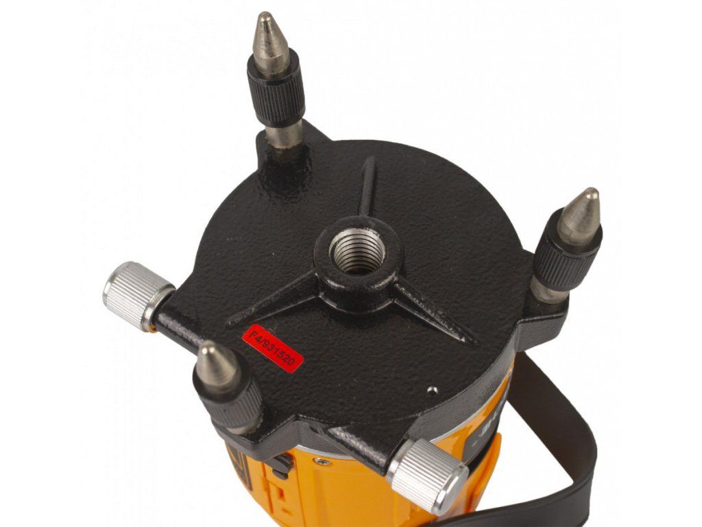 Přístroj má aretační tlačítko pro zamknutí měřicího mechanismu při přepravě, aby se nepoškodil. Laser je usazený v kovové otočné podložce se třemi nastavitelnými nožičkami.