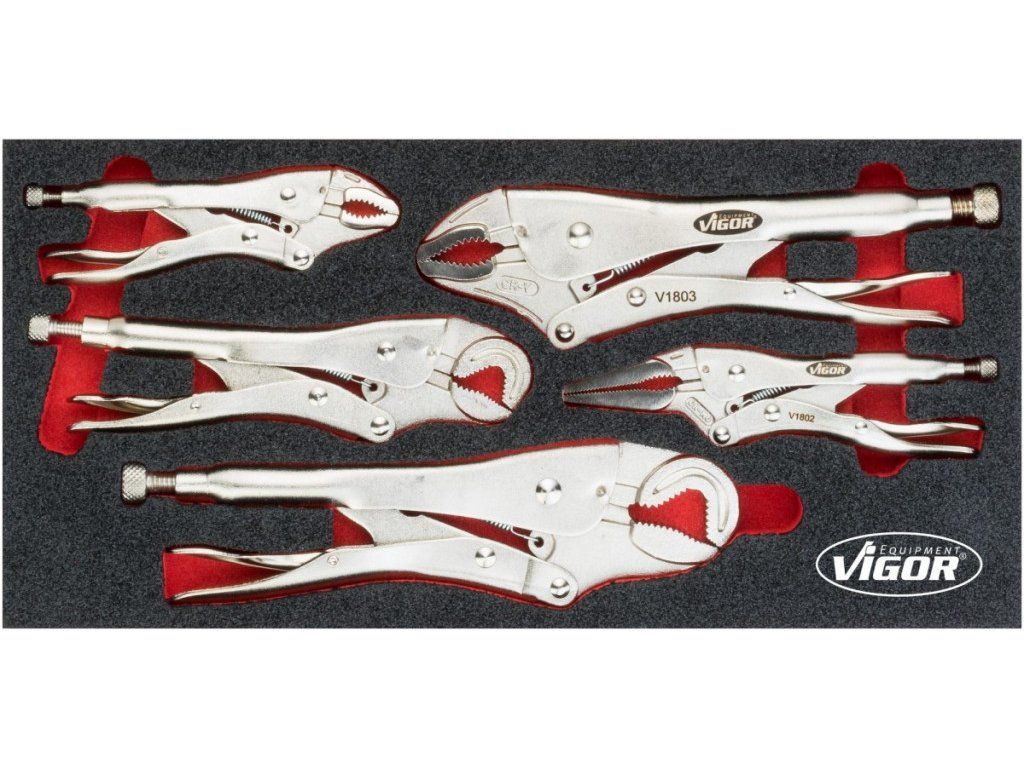 Sada 5 ks samosvorných kleští ve 2K výplni do dílenského vozíku o rozměru 393x188 mm obsahuje: