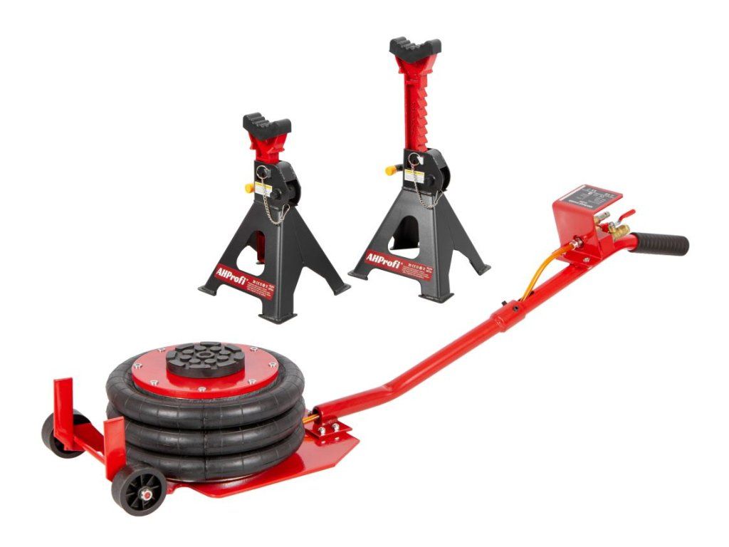 Kompletní sada pro rychlé zvedání a bezpečné podepření vozidel. Obsahuje pneumatický měchový zvedák s nosností 3 t a pár výškově stavitelných podpěr s nosností 3 t.