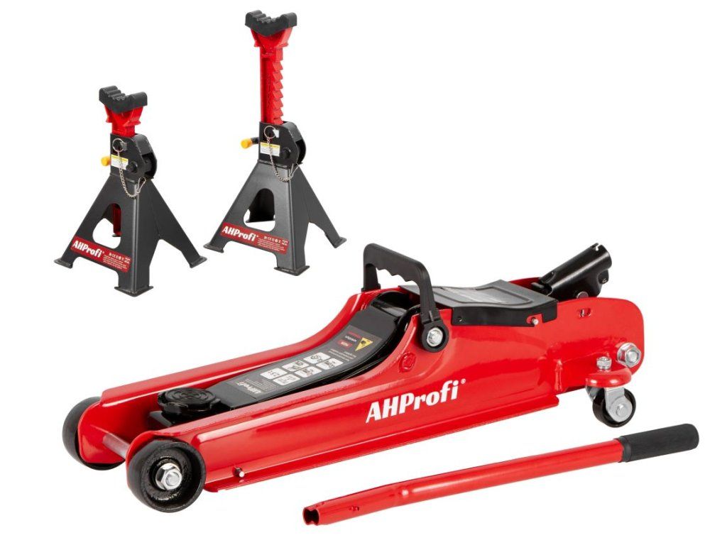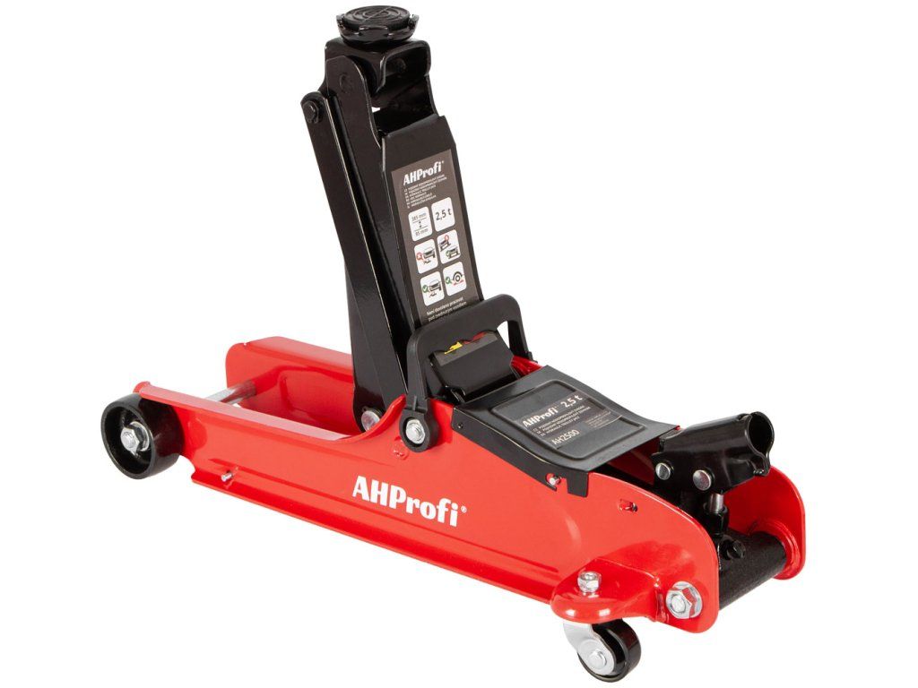 Nízkoprofilový zvedák AHProfi 2,5 t (AH2500) pro rychlé a bezpečné zvedání osobních a lehkých užitkových vozů. Vhodný pro práci v servisu i domácí dílně.