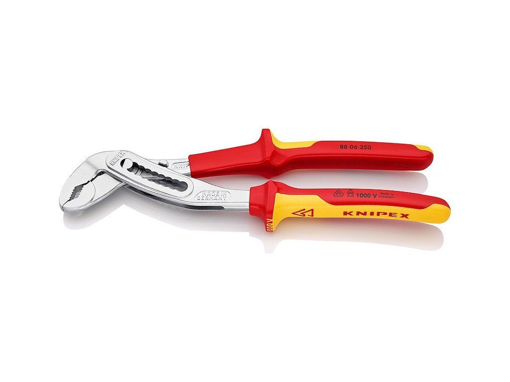 Více výkonu a komfortu ve srovnání s běžnými kleštěmi na vodní čerpadla: 9stupňové aretační nastavení s rozšířením úchopu o 30 %.. Snadný přístup k obrobku v důsledku velmi štíhlého konstrukčního tvaru v celé oblasti hlavy a kloubu. Samosvorné na trubkách a maticích: žádné sklouzávání na sevřené součásti, práce šetřící síly a vynaložení menší síly. Plochy čelistí se speciálně kalenými zuby, tvrdost zubů asi 61 HRC: trvale spolehlivé uchopení díky vysoké odolnosti proti opotřebení. Posuvný průchozí čep kloubu: vysoká stabilita díky dvojitému vedení. Kryt chránící prsty uživatele před skřípnutím. Chromvanadová elektroocel, kovaná, kalená v oleji.