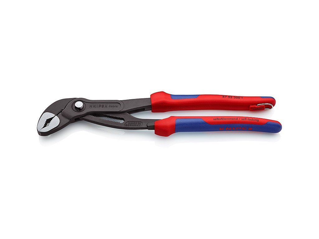 Nastavení stisknutím tlačítka přímo na obrobku. Jemné nastavení pro optimální přizpůsobení různým velikostem obrobků a ergonomickou polohu rukojetí. Samosvorné na trubkách a maticích: žádné sklouzávání na sevřené součásti, práce šetřící síly a vynaložení menší síly. Plochy čelistí se speciálně kalenými zuby, tvrdost zubů asi 61 HRC: trvale spolehlivé uchopení díky vysoké odolnosti proti opotřebení. Posuvný průchozí čep kloubu: vysoká stabilita díky dvojitému vedení. Spolehlivé zaskočení čepu kloubu: žádné neúmyslné přenastavení. Kryt chránící prsty uživatele před skřípnutím. Chromvanadová elektroocel, kovaná, kalená v oleji. Kleště s připevňovacím okem pro připevnění pojistky proti upadnutí.