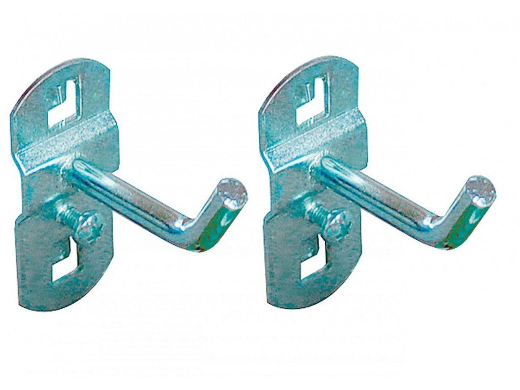 Šikmý hák dlouhý 50 mm je určen pro děrované desky s roztečí 38 x 38 mm. Připevněním na perforovaný panel lze rozšířit úložný prostor také pro sestavy dílenského nábytku, dílenské vozíky s nářadím i bez nářadí, pracovní stoly i policové regály.