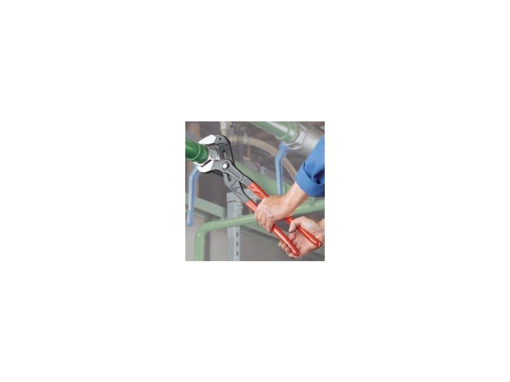 Hasák a instalatérské kleště v jednom nástroji s velikostí rozevření pro trubky až do 4 1/2". Kleště jsou samosvorné na trubkách a maticích: žádné sklouzávání na sevřené součásti, práce šetřící síly a vynaložení menší síly.