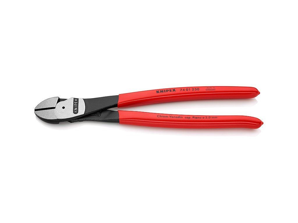 Pro nejvyšší, trvalé namáhání. Vysoký řezný výkon při vynaložení nepatrné síly díky optimálnímu přizpůsobení úhlu břitů a převodového poměru. Precizní břity dodatečně induktivně tvrzené (tvrdost břitů asi 64 HRC) pro všechny druhy drátů včetně pružinového drátu. Chromvanadová vysoce výkonná ocel, kovaná, kalená v oleji. Boční štípací kleště dlouhé 250 mm jsou vhodné pro měděné vodiče do průřezu 16 mm? a hliníkové vodiče do průřezu 35 mm?.
