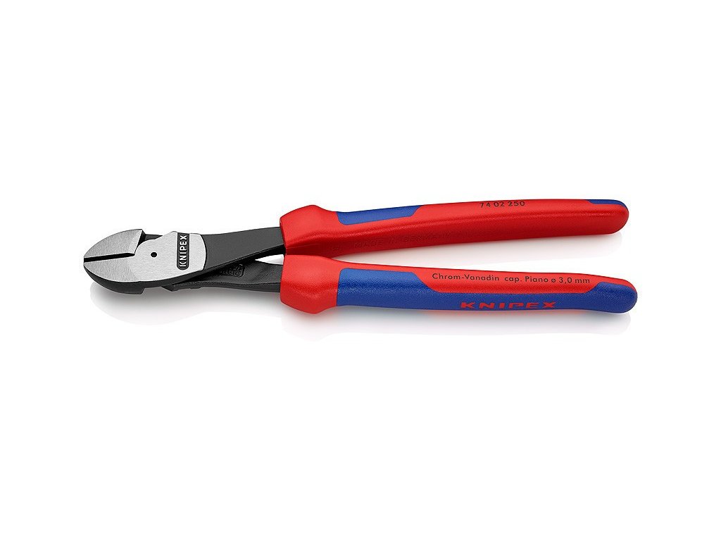 Pro nejvyšší, trvalé namáhání. Vysoký řezný výkon při vynaložení nepatrné síly díky optimálnímu přizpůsobení úhlu břitů a převodového poměru. Precizní břity dodatečně induktivně tvrzené (tvrdost břitů asi 64 HRC) pro všechny druhy drátů včetně pružinového drátu. Chromvanadová vysoce výkonná ocel, kovaná, kalená v oleji. Boční štípací kleště dlouhé 250 mm jsou vhodné pro měděné vodiče do průřezu 16 mm? a hliníkové vodiče do průřezu 35 mm?.